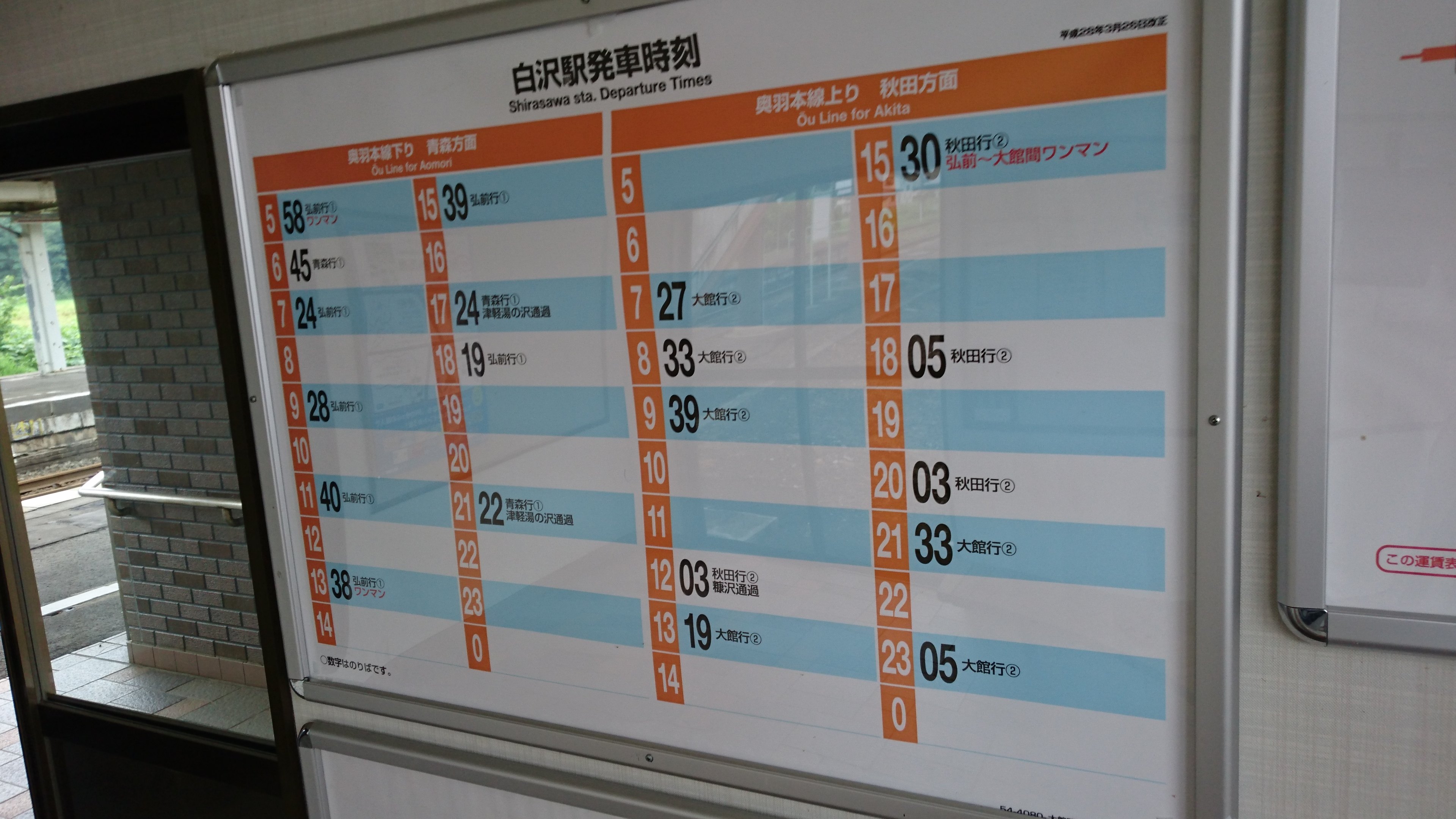 ・平成28年3月26日改正白沢駅発車時刻